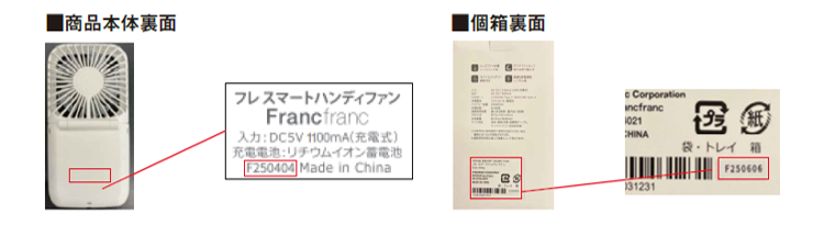 このたび、弊社が2025年3月から6月まで販売いたしました「フレ スマートハンディファン(2025年製)」につき、商品不良(充電ICの不具合による動作不良や発熱など)の発生率が高い状況にあることから関係省庁との協議を踏まえ対象商品を自主回収することといたしました。