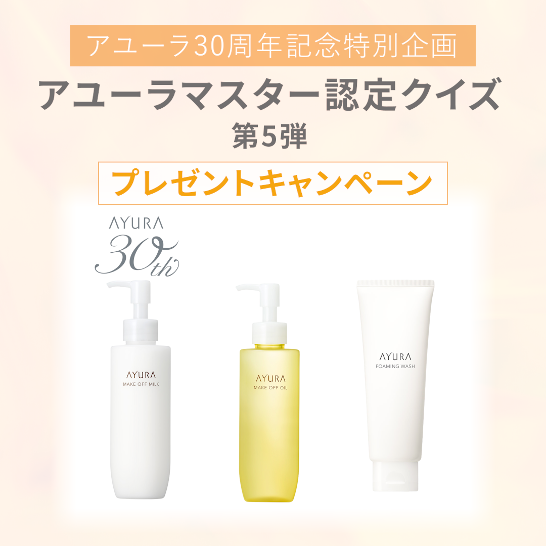 ブランド30周年を記念し、公式Instagramと同時に「アユーラマスター認定クイズ」第5弾を開催いたします!