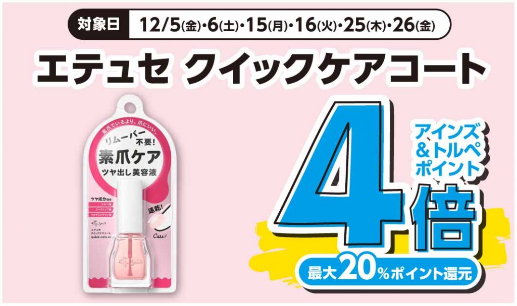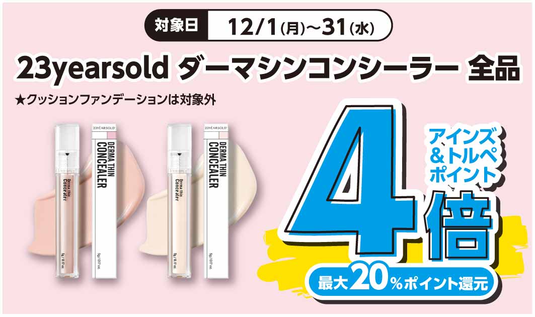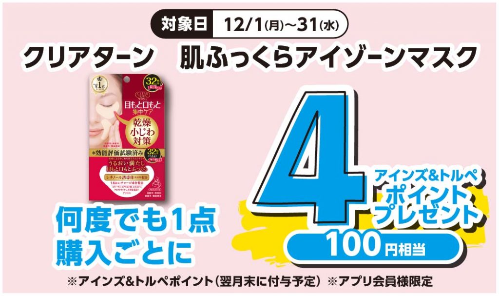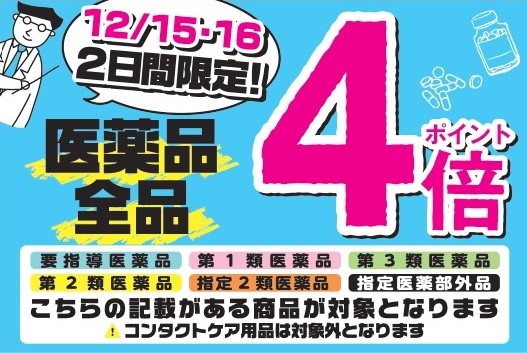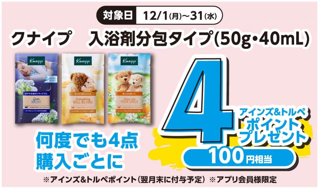 対象商品を何度でもいずれか4点同時購入ごとに、ポイントプレゼント!
