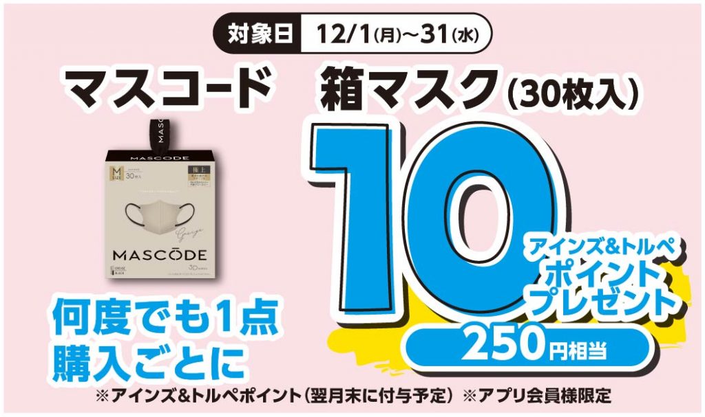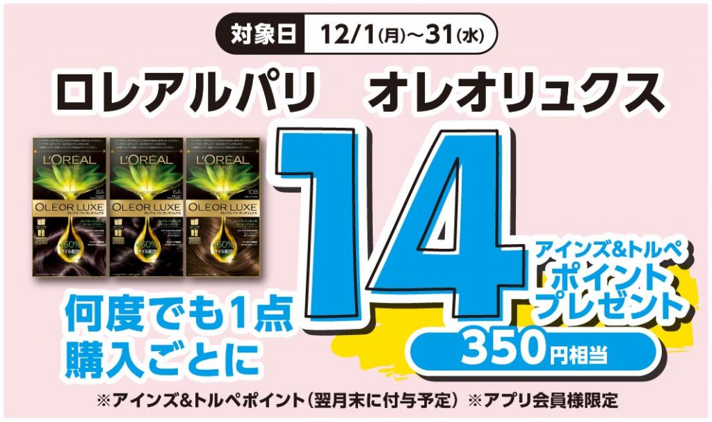 対象商品を何度でも1点購入ごとに、ポイントプレゼント!