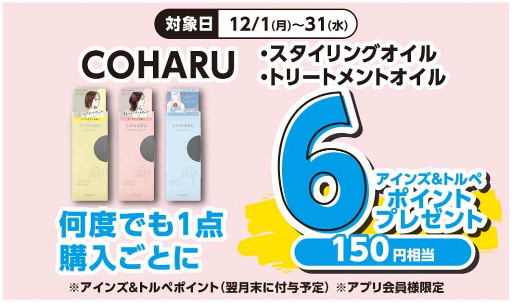 対象商品を何度でも同時購入ごとに、ポイントプレゼント!