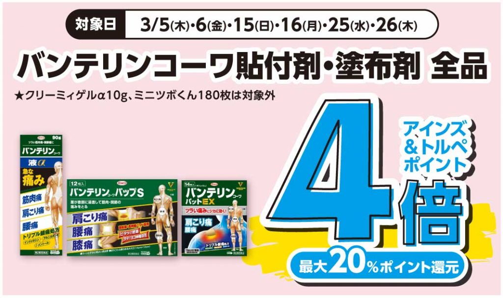 バンテリンコーワ貼付剤・塗布剤 全品※クリーミィゲルα10g・ミニツボくん180枚は対象外