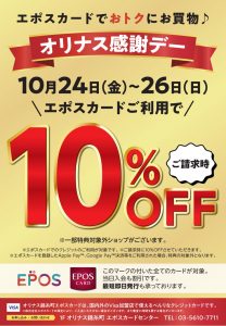 期間中、エポスカードでのお支払いで請求時、10%OFF!!
