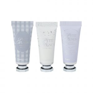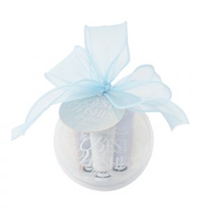 オーナメントのような丸型クリア容器に入った、3種の香りが楽しめるハンドクリームセットです。