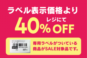 1/20(火)~は、アウトレット対象商品すべて表示価格から40%OFFに!