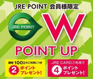 JRE CARDでクレジット決済すると、100円(税抜)でさらに+2ポイント、合計4ポイント貯まります!