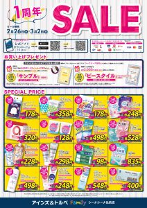 期間中、B1Fの「食生活♥♥ロピア」様の当日お買上げレシートをご持参のうえ、アインズ&トルペ店内商品を1点以上お買い上げの先着500名様に、「サンプル(スキンケア・ヘアケアなど)」をプレゼント!