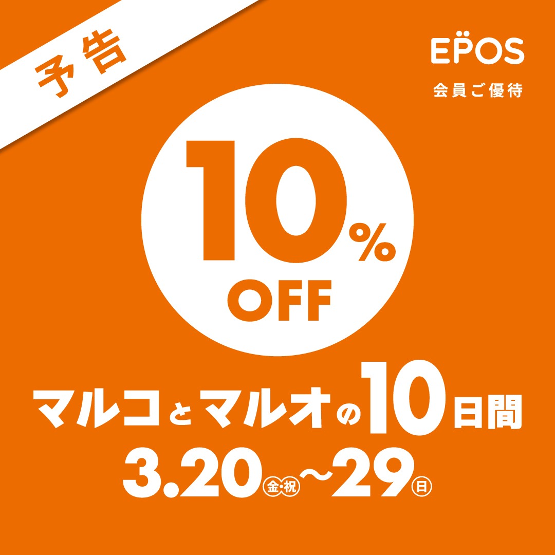 期間中、対象店舗でお買い物の際、エポスカード決済をご利用いただくと、店内商品が全品10%オフ!