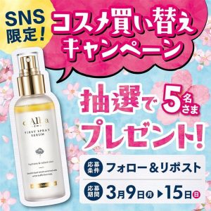 3/9(月)~3/15(日)の期間中、X(旧Twitter)で、買い替えた商品を「#コスメ買い替え宣言」をつけて投稿してくれた方の中から、抽選で5名様に「ダルバ ファーストスプレーセラム 100mL」プレゼント!