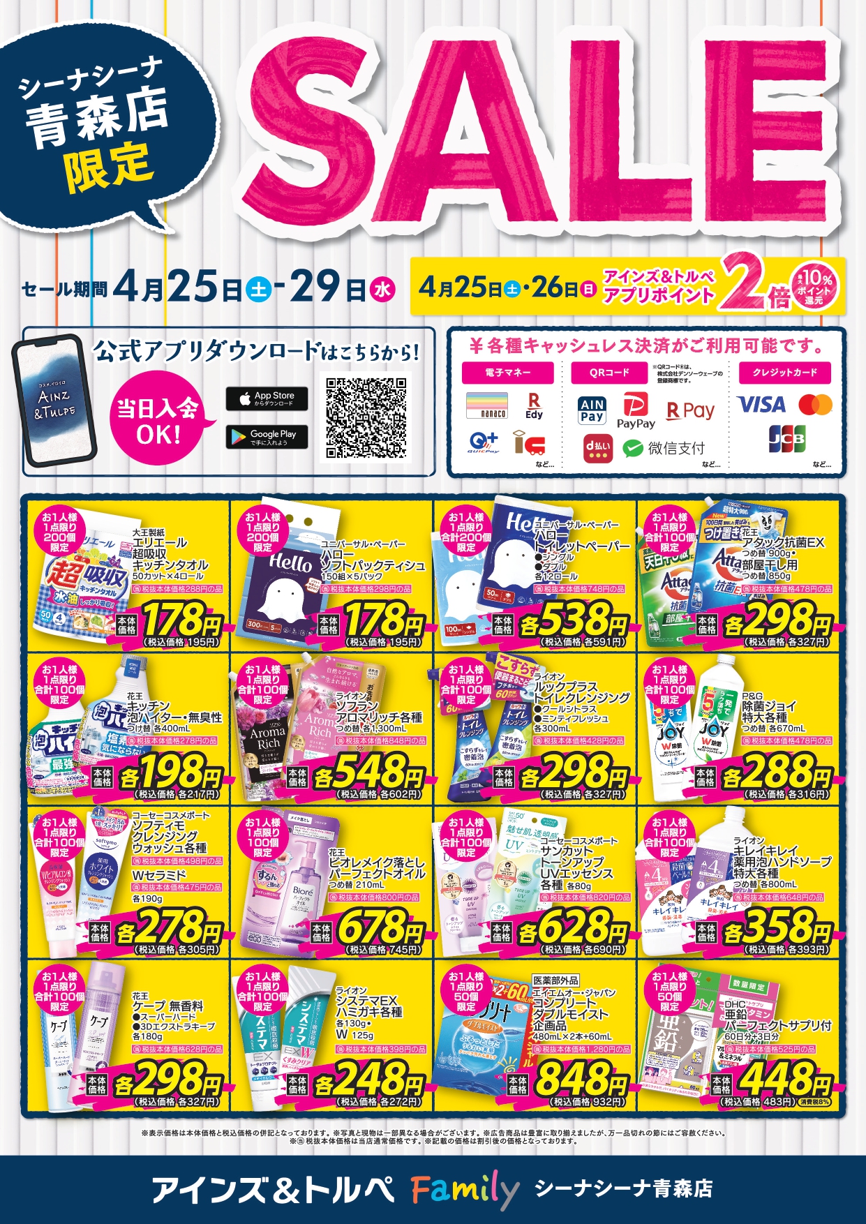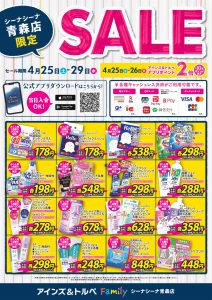 シーナシーナ青森店 🔥限定セール🔥 ※画像はタップすると拡大できます。 期間:4/25(土)~4/29(水・祝) シーナシーナ青森店限定セールのお知らせ! 詳細は上記画像をタップしてご確認ください👀 おトクなこの機会にぜひご来店ください💛 ■対象店舗 シーナシーナ青森店